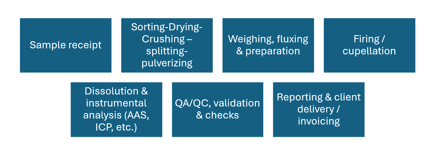 Value Stream Mapping is a lean management technique used to visualize and analyze every step involved in a process—from input to output. In a gold assay laboratory, this involves mapping each stage of the Fire Assay (FA) workflow, identifying where value is added and where waste occurs.